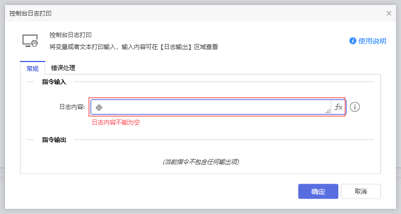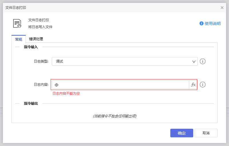 | 1.1.4 | 文件日志打印 | 基本指令 | rpa.debug() |