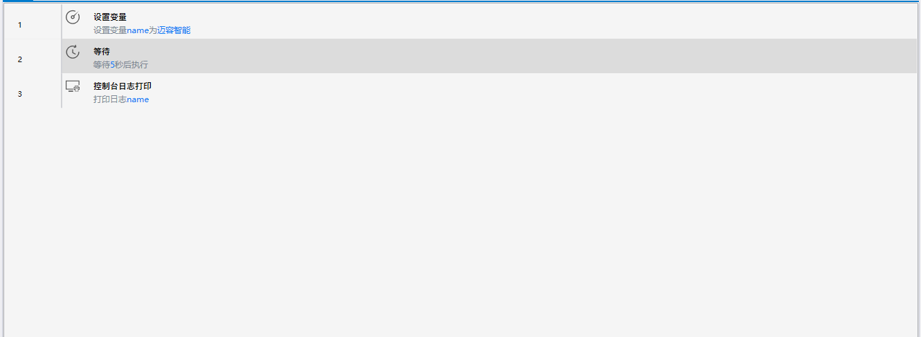 此流程执行逻辑:使用【数据库连接】指令用指定数据库连接字符串创建数据库连接对象并保存 --> 执行【SQL查询】指令在该数据库连接对象中执行SQL语句并保存结果 --> 执行【控制台打印日志】指令打印结果 --> 执行【关闭数据库】指令关闭数据库连接